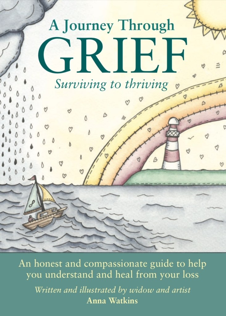 I read lots of books to help me, but I found I needed something more hopeful, beautiful and uplifting. This has led me to write and illustrate the book / journal I wish I’d had – A Journey Through Grief.